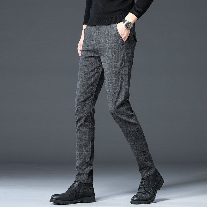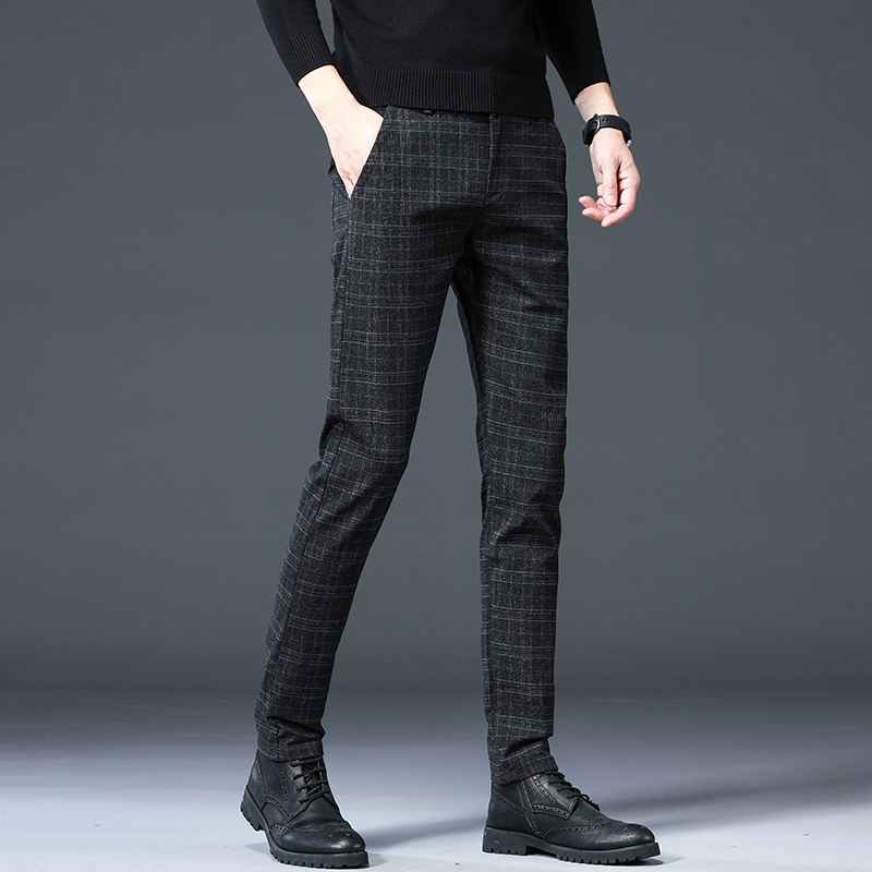 2022 new business grindings for casual long pants men loose straight cylinder 100 lap spring and autumn style plaid men's pants clothing