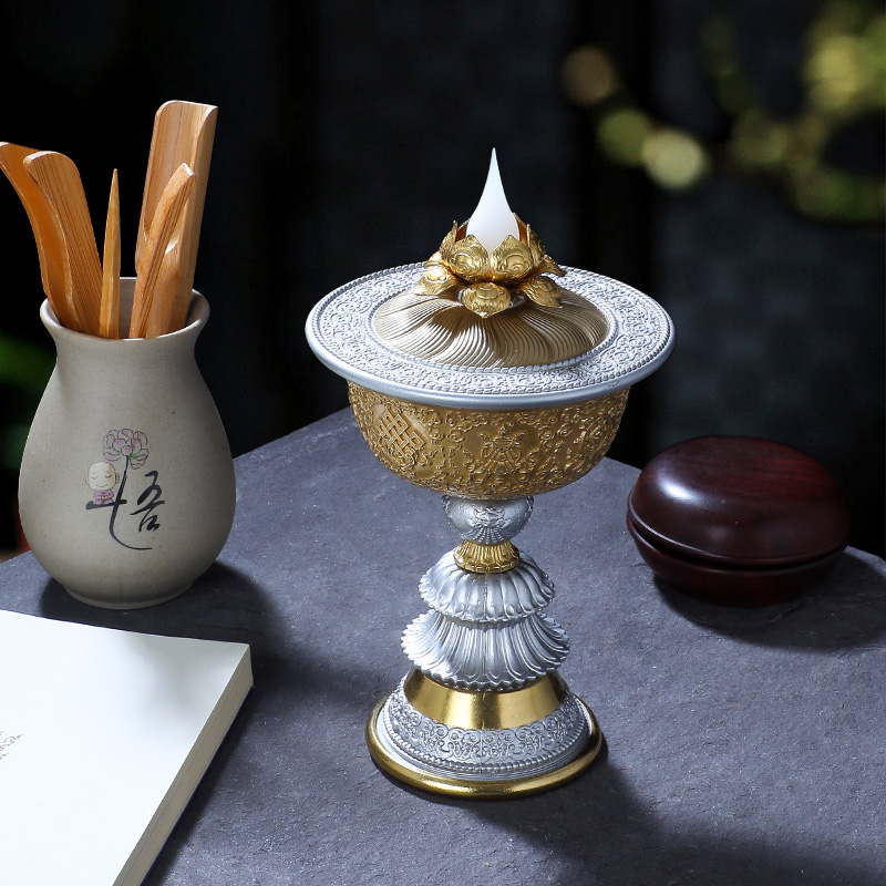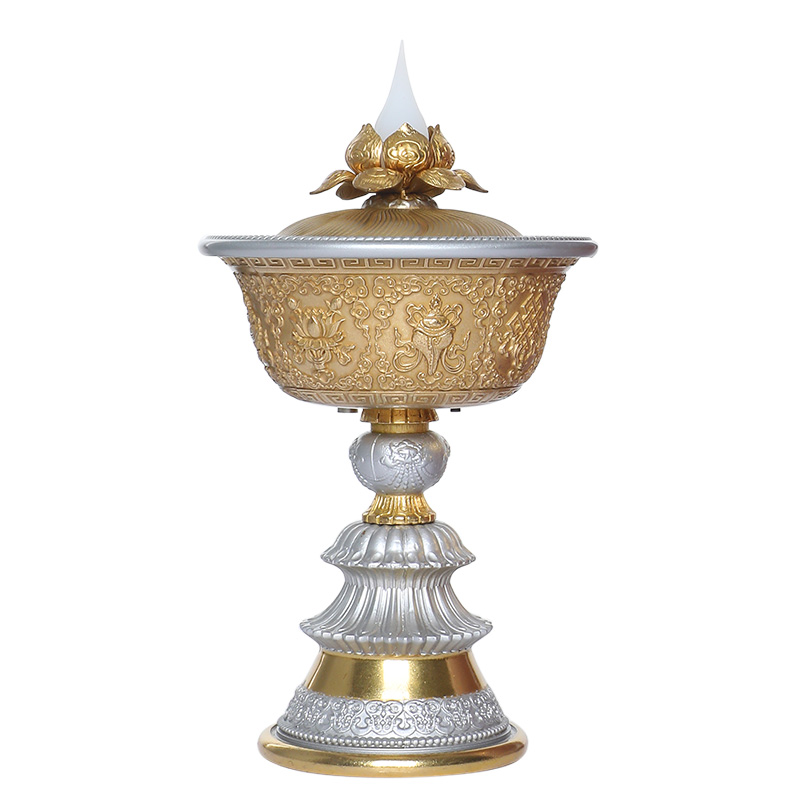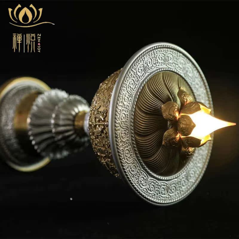 Electronic Butter Lights for Buddhist Charging LED Pure Copper Electronic Candlestick Simulation Flame Long Flower Lotus Flower Supply Light