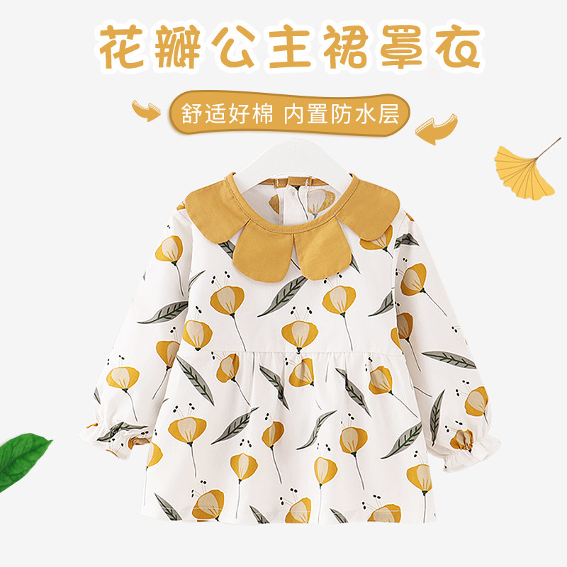 Baby Hood Clothes Children Eating Bib Girl Meal Apron Apron Pure Cotton Princess Dresses Waterproof Anti-Wear Spring Autumn Long Sleeves-Taobao