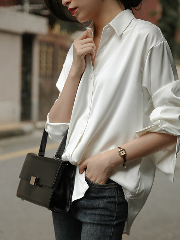 Real Silk Shirt Woman Design Sensation outside wearing 100 lap silk high-end mulberry silk blouse with lukewarm wind shirt