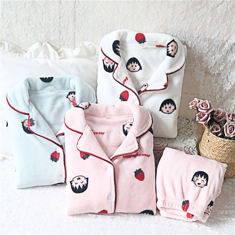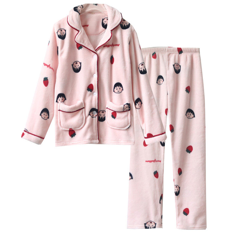 Small pills Flannel Velvet Pyjamas Woman Autumn Winter Style Coral Fleece Plus Suede Not Thickened to warm two sets of home Suits Suits