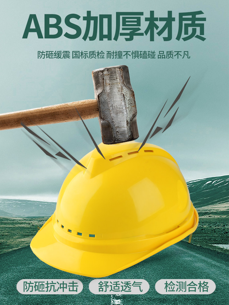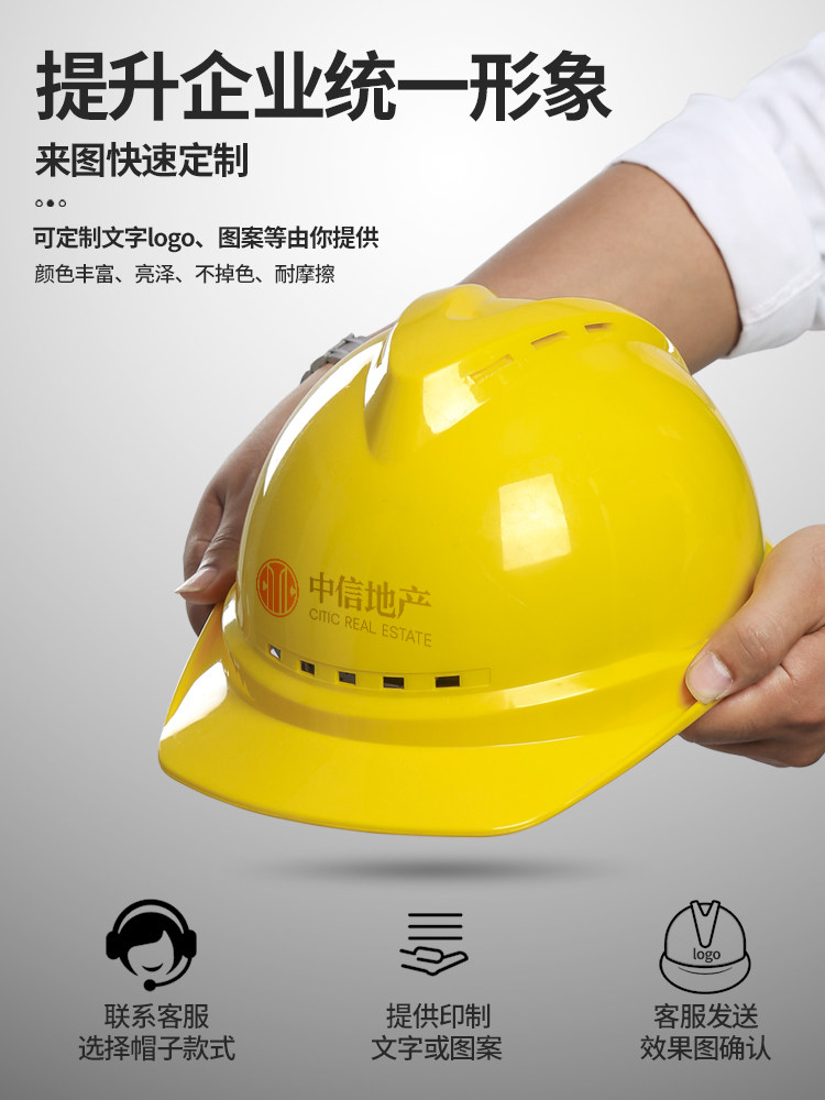 Safety Helmet National Standard Engineering Site Safety Head Cap Breathable Thickened Building Construction Safety Helmet Glass Fiber Protective Print