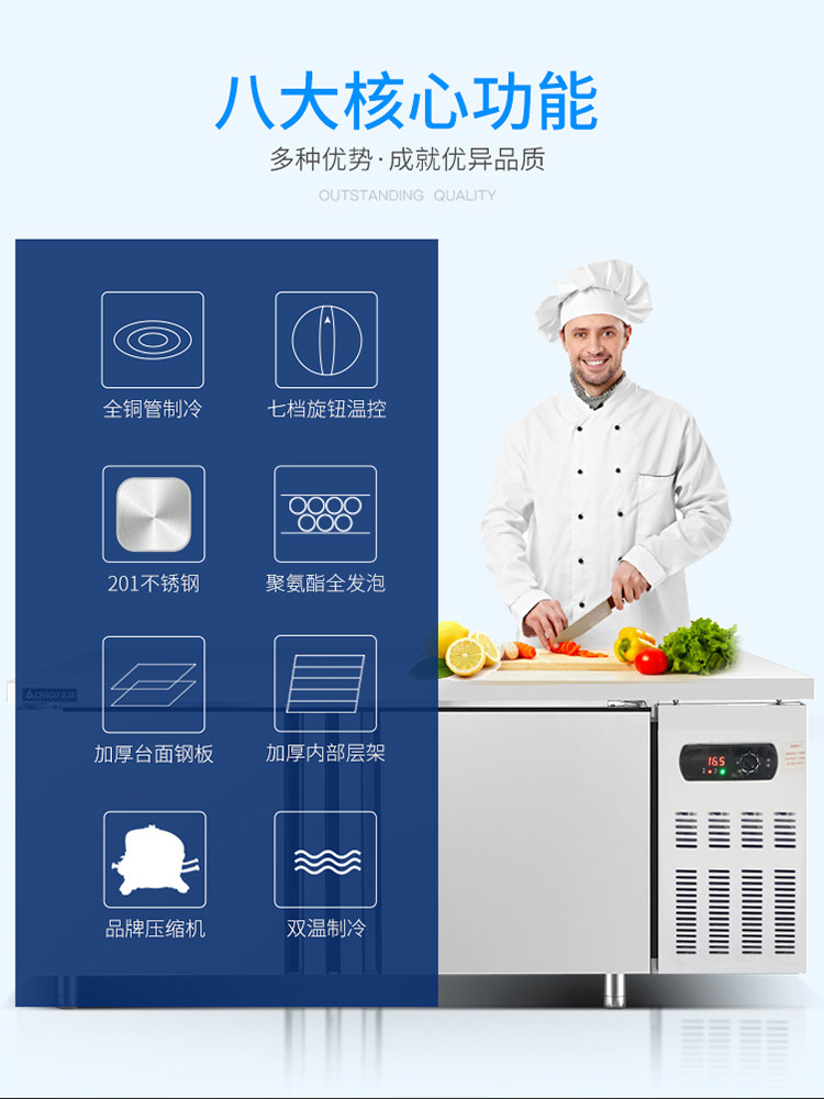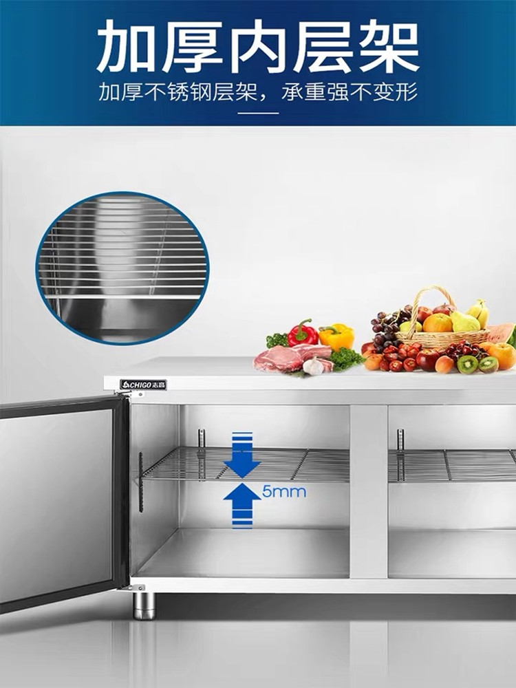 Chigo Refrigeration Workbench Freezer Kitchen Commercial Refrigerator Preservation Cabinet Operation Water Bar Milk Tea Shop Equipment