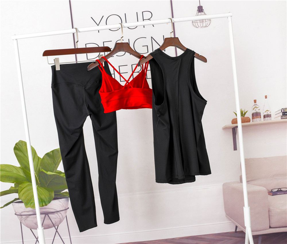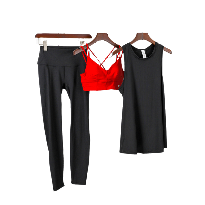 Nude skin-friendly yoga three-piece women's no embarrassing lines show thin temperament running dance fitness fitness sports suit women