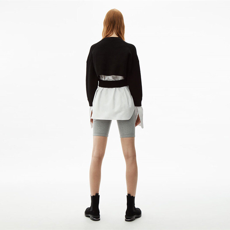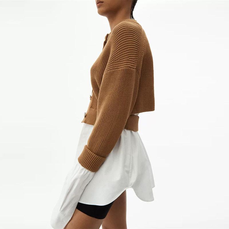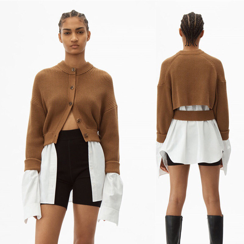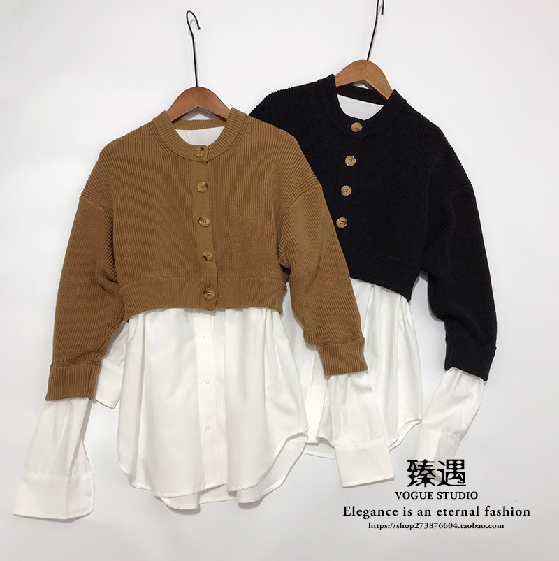 2021 Spring Autumn New Black Hump Color Fake two splicing lining clothes Knitted Cardiovert Lady Cardiovert Sweater Jacket