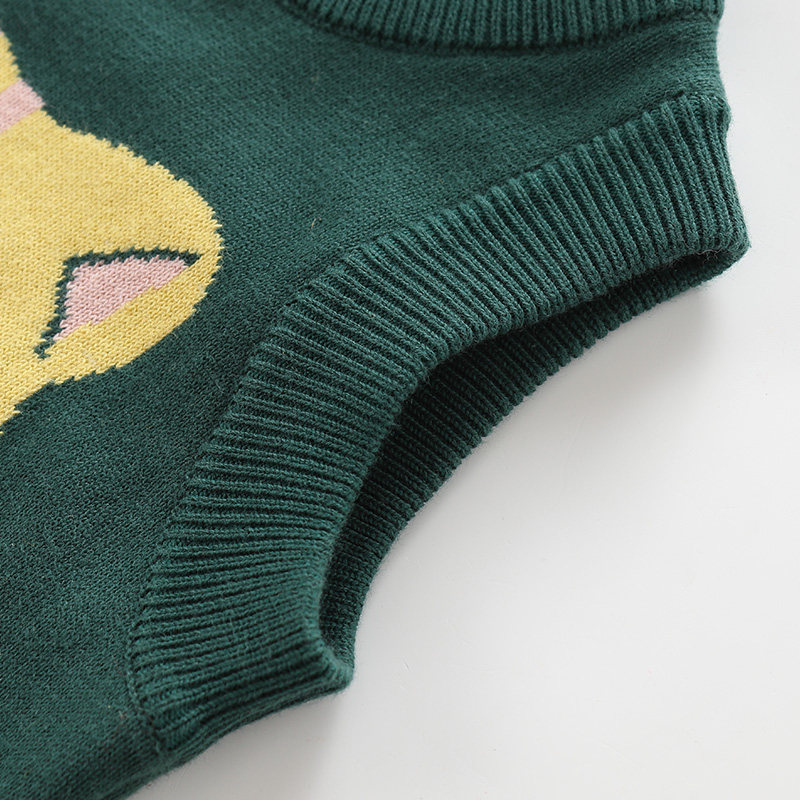 Dark green cat vest Light yellow koala vest Pink pig vest SMILE red vest Brown deer head vest Dark green Bollig vest Brown Bollig vest I