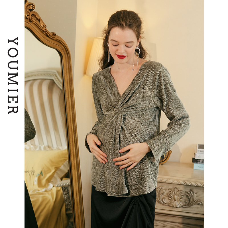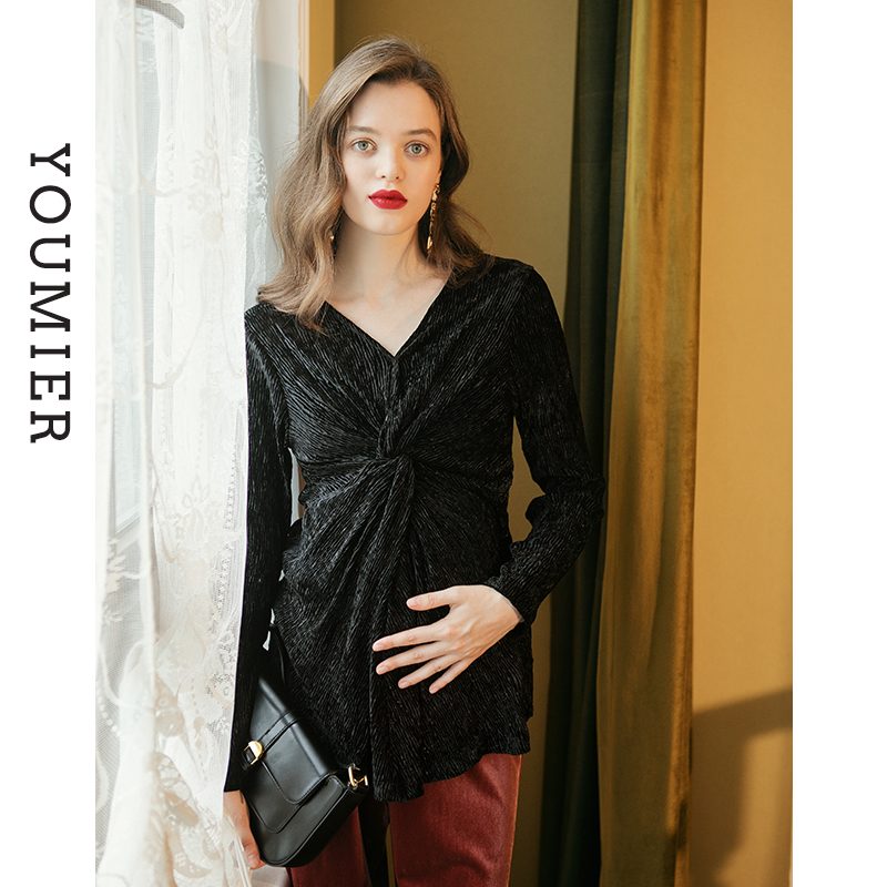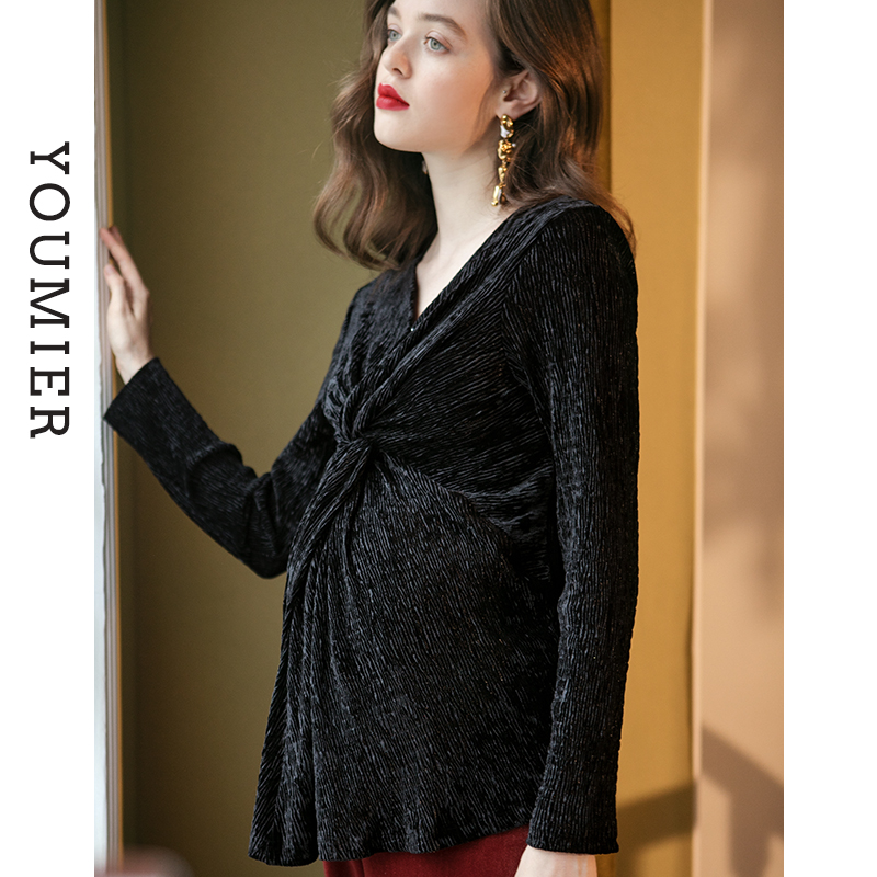 Yomel high-end maternity maternity gown maternity velvet top v-neck new nursing dress