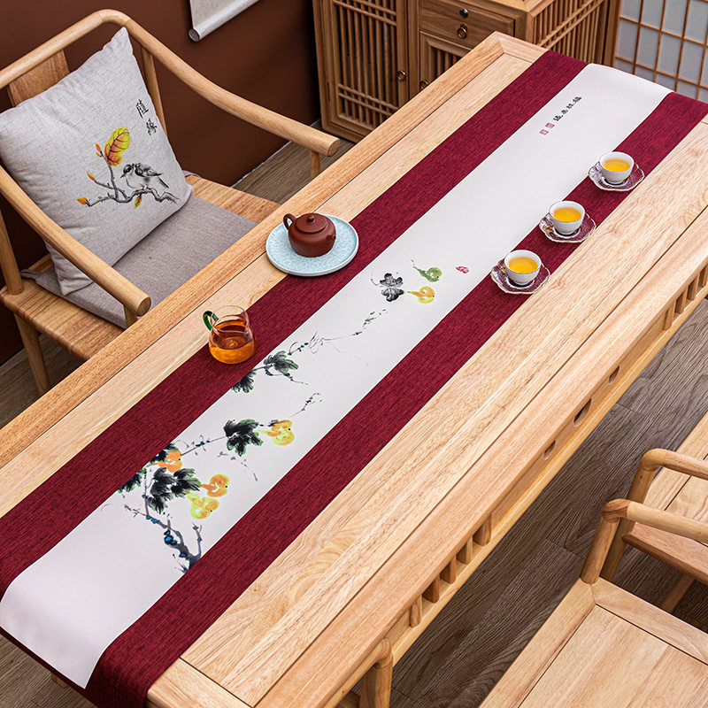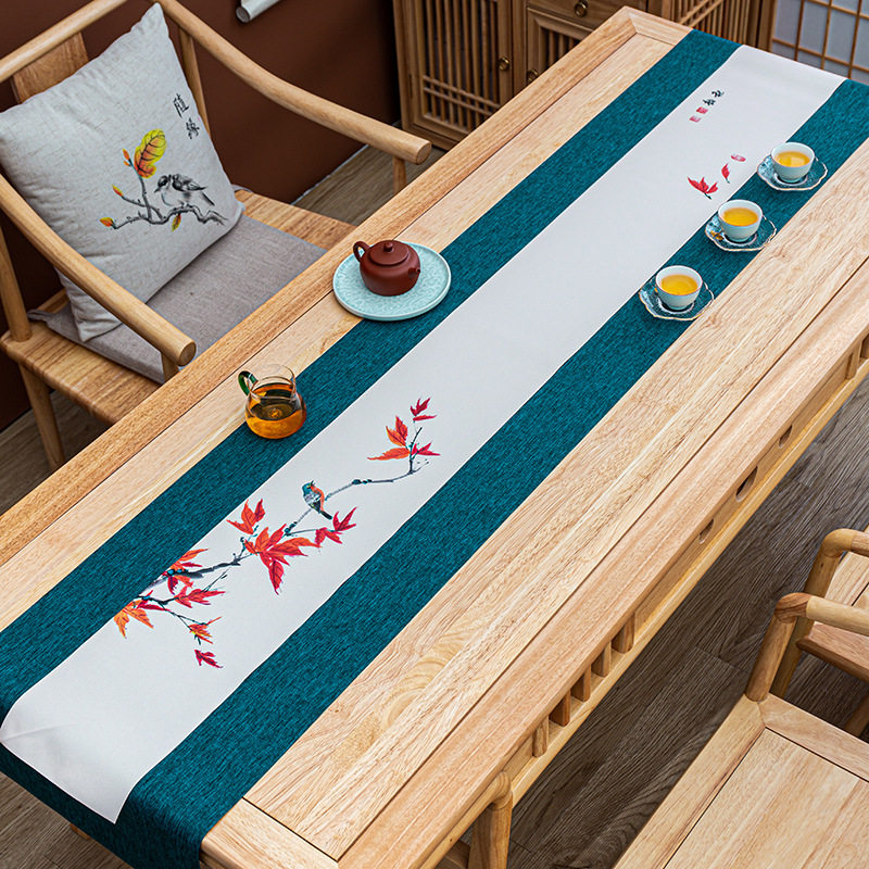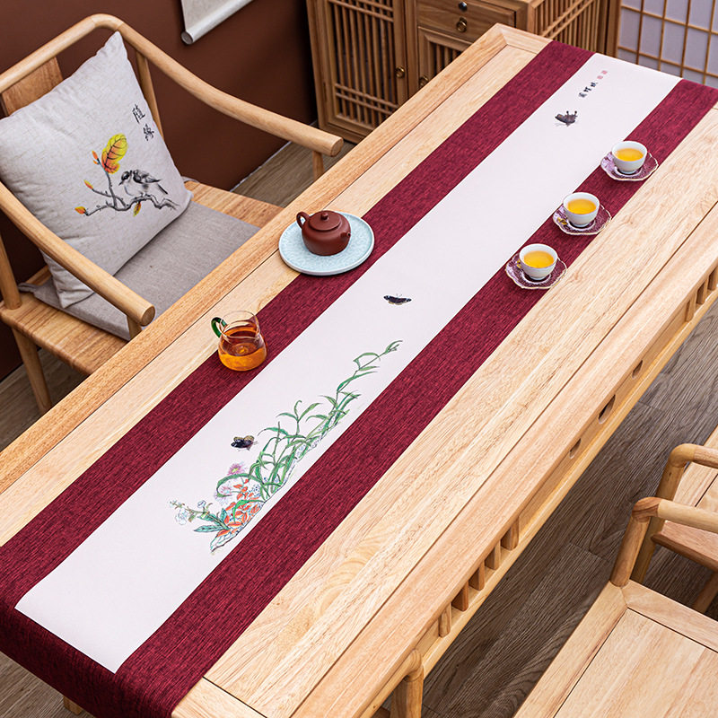 Waterproof cloth table flag Chinese style tea path hand-painted waterproof tea mat hemp cloth tea set accessories Chinese wind cloth art modern tea flag