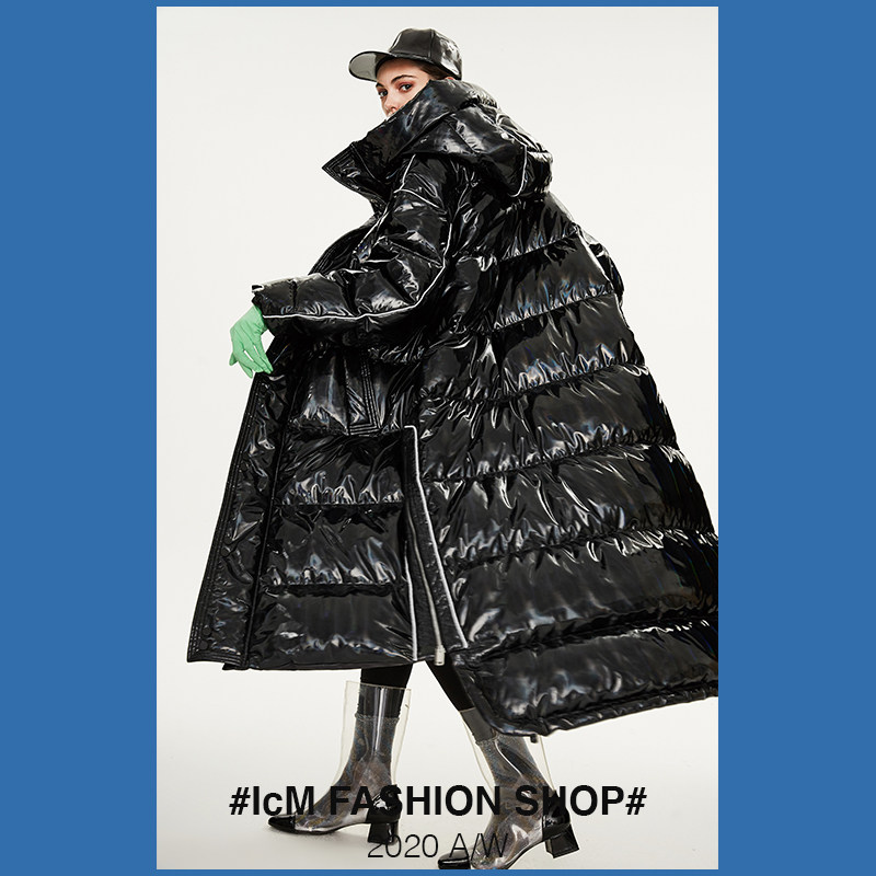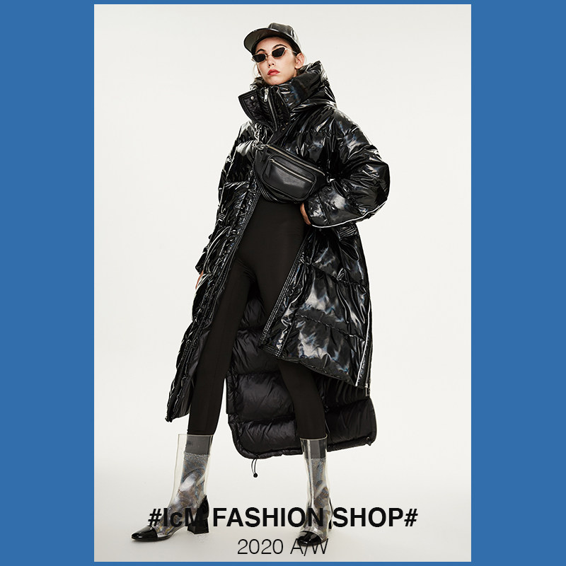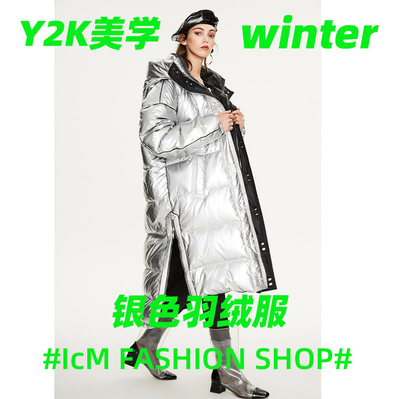 Laser bright silver down jacket 2021 New Men and women loose knee long version thickened northeast winter disposable