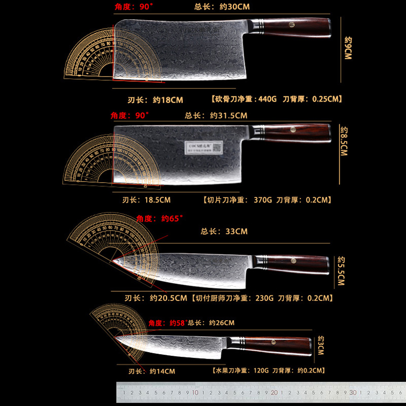 Imported VG10 Cutter Set Kitchen Household Combination Damascus Steel Chopper Chef Full Set of Kitchen Ware