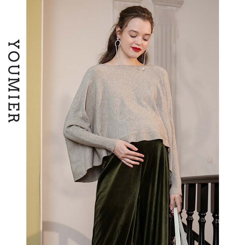 Yumier maternity autumn wear new one-collar knit shirt bat shirt short loose high-end maternity wear