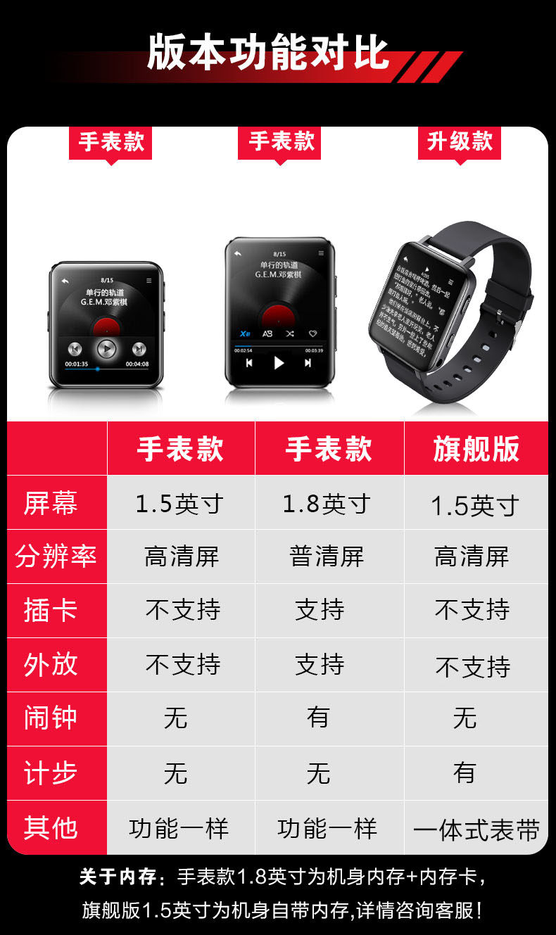4G (without Bluetooth) 4G(with Bluetooth) 8G(with Bluetooth) 16G(with Bluetooth) 32G (with Bluetooth) 8G (without Bluetooth)