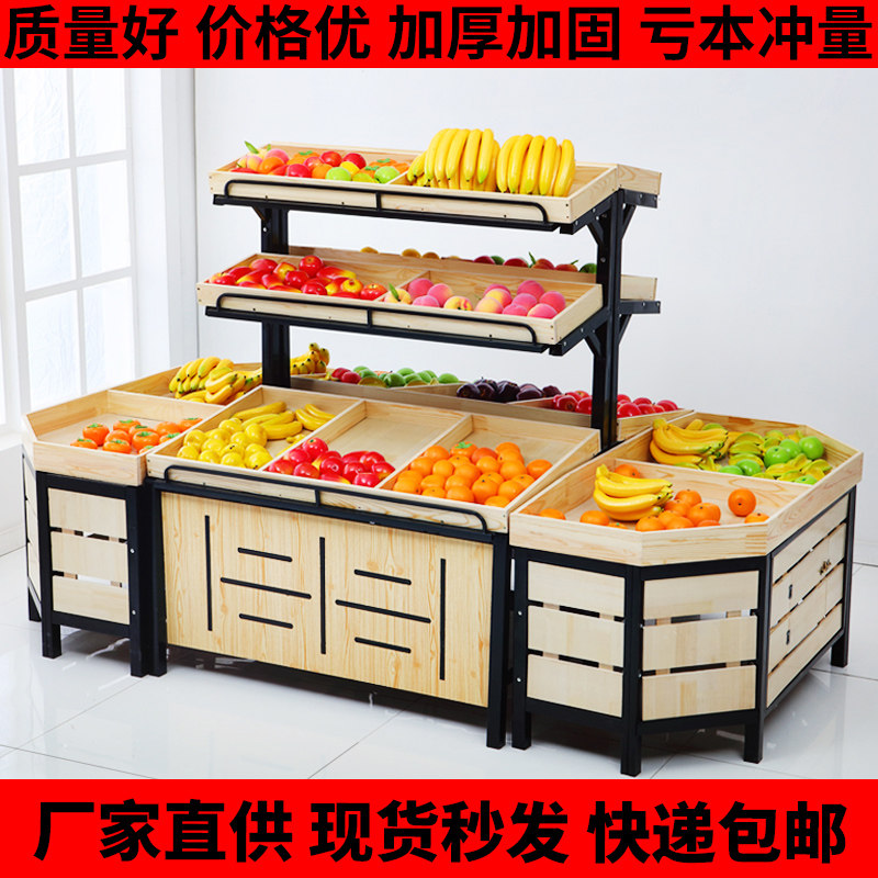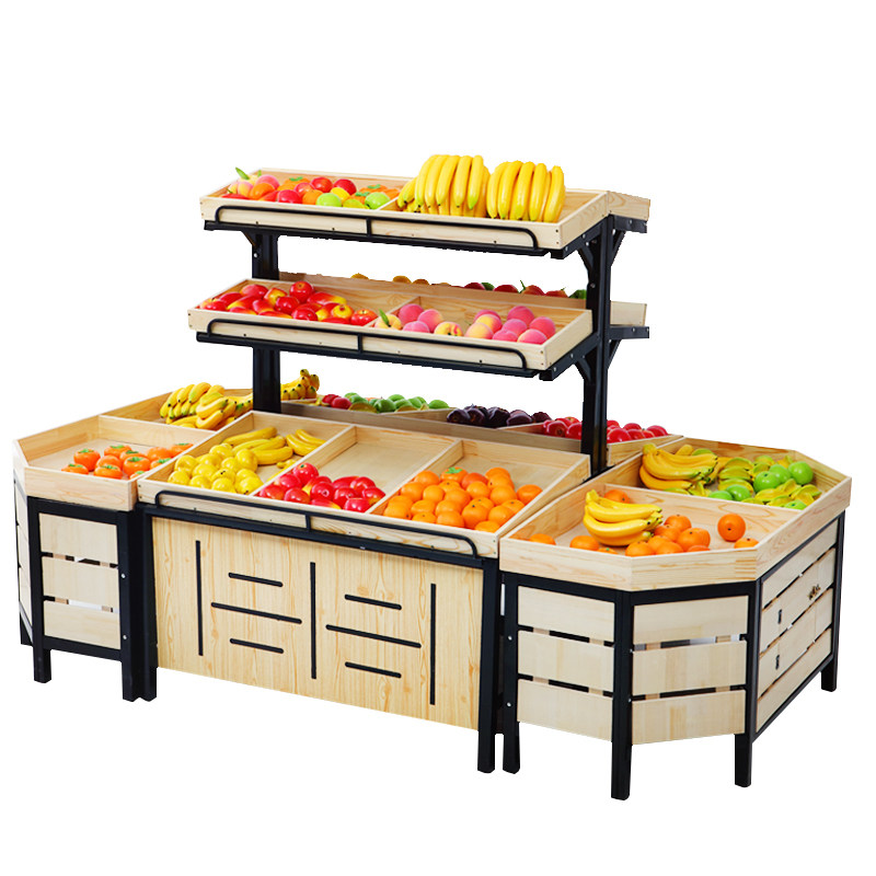 Supermarket fruit and vegetable pile head shelf Middle Island display shelf convenience store commercial fresh snacks fruit and vegetable wooden shelf