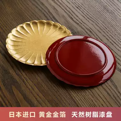 Japan imported mountain lacquerware coaster high-end snack small plate creative plum blossom type handmade gold foil tea tray