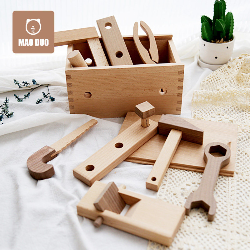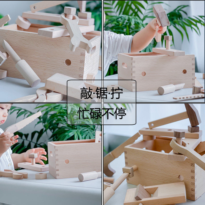 Play house wine woodworking toy boy simulation toolbox solid wood box repairman nut combination hands-on coordination