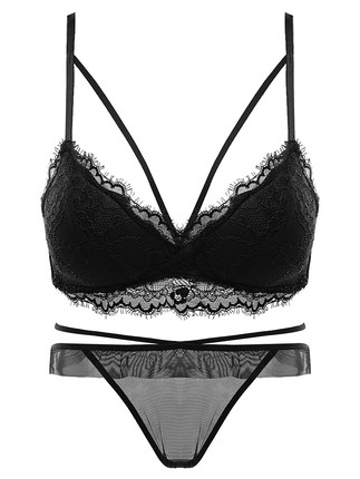 Japanese sexy lace lace underwear female no steel ring small chest gathered beautiful back sexy black underwear set