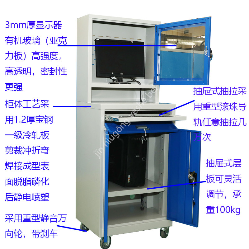 Industrial workshop mobile desktop vertical computer cabinet PC printer network cabinet dustproof mainframe box metal control cabinet