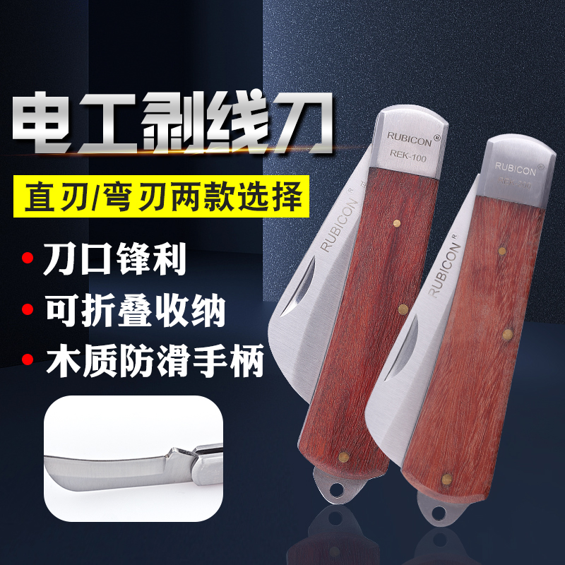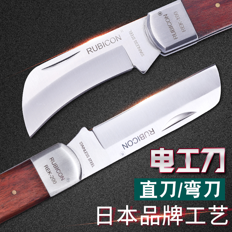 Japan RUBICON Robin Hood electrician knife REK-100 200 stainless steel straight edge curved edge cable stripping knife