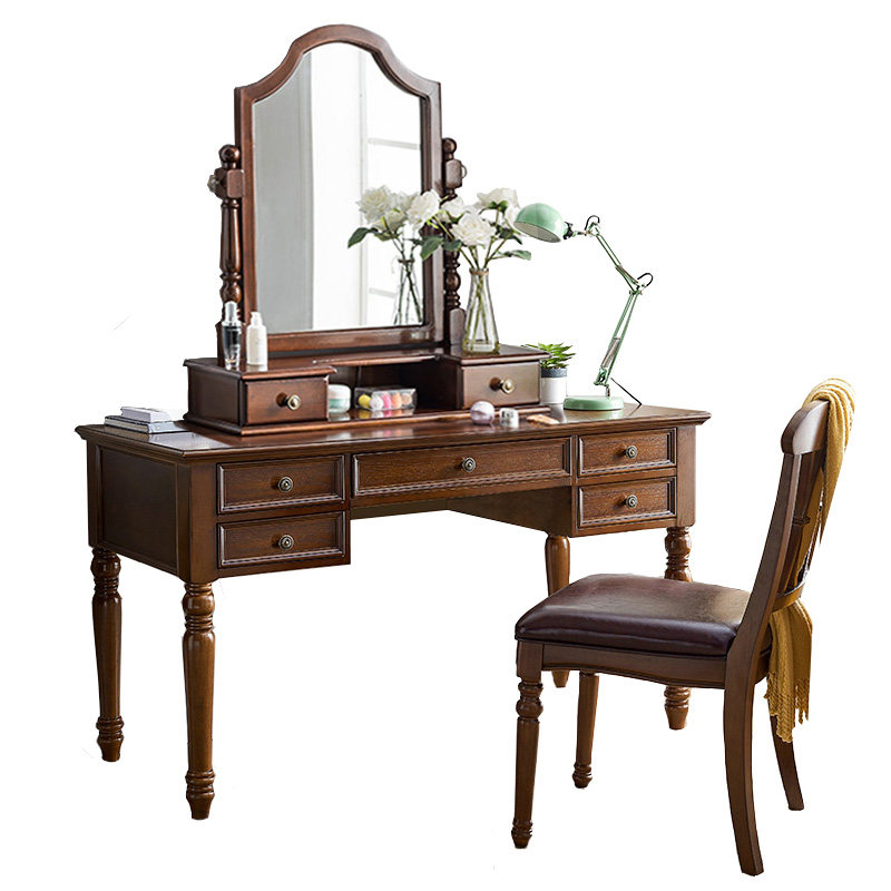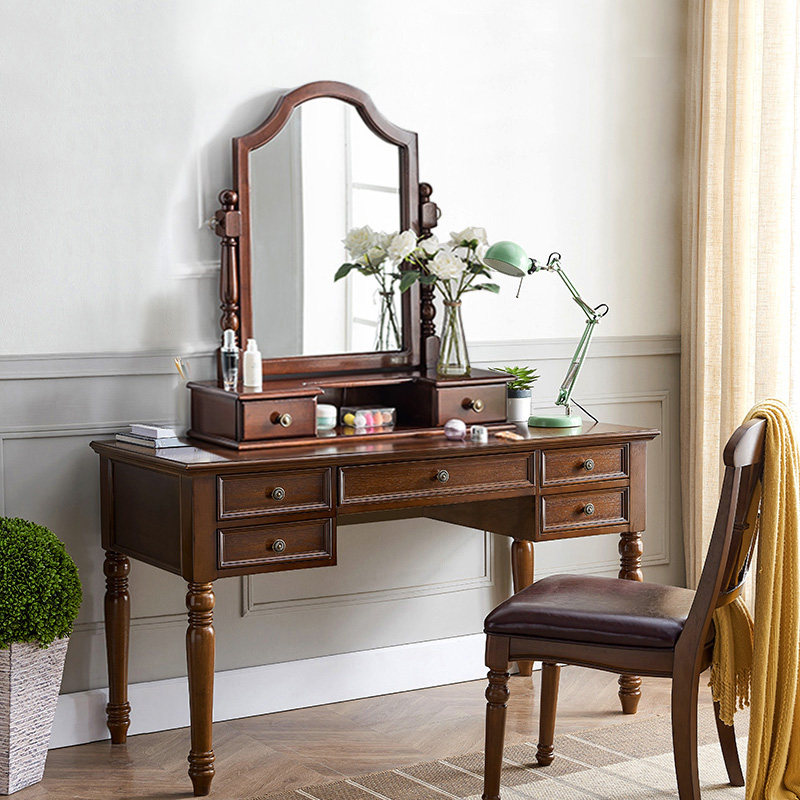 American solid wood dressing table bedroom simple storage cabinet integrated Nordic light luxury modern small apartment retro makeup table