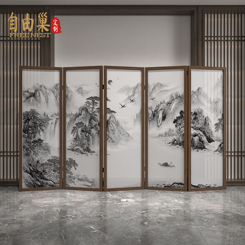 New Chinese Ancient Fan Guo Painting Screen Folding and Covering Living Room Meeting Room Partition