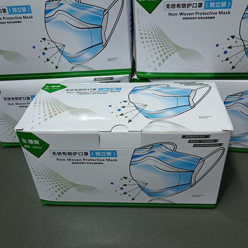 Green cool 215 disposable mask anti - fly foam thin three layers of breathable comfort and sunscreen 50 packaging
