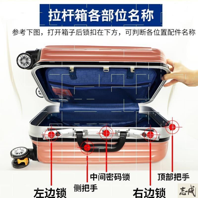 B73-top handle (pure black) B63-left lock 1 B35-24 inch side handle B35-side lock 1 pair (left right) key 1 pair B73-silver edge lock 1