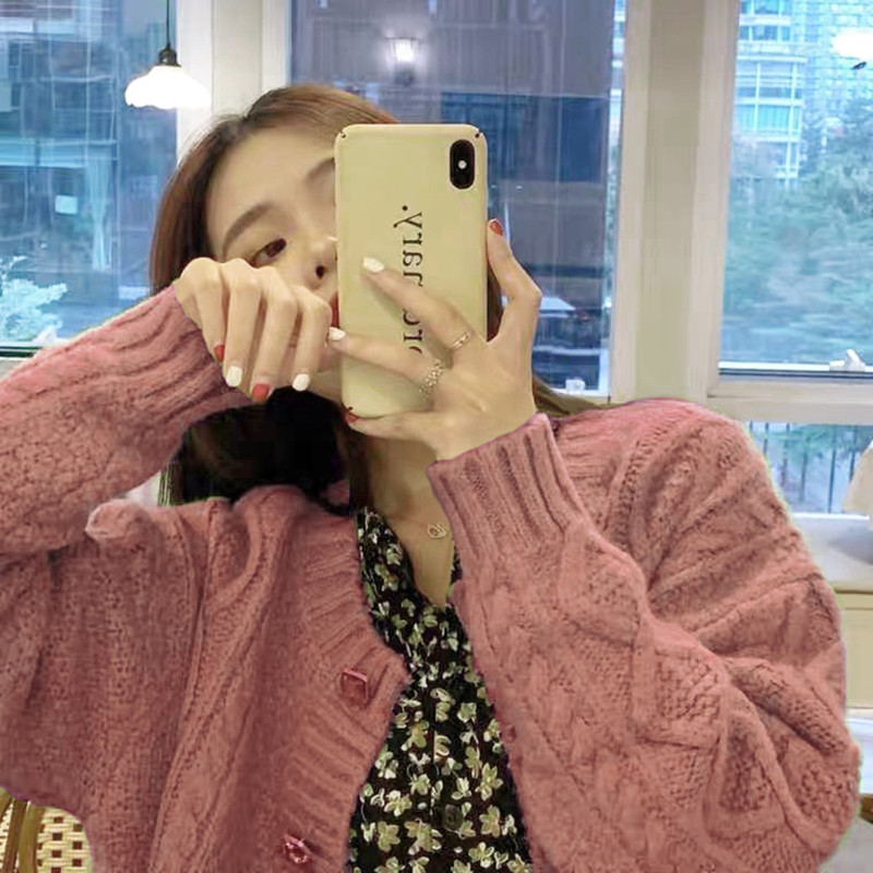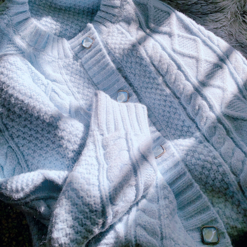 Day Faculty Gentle Crude Needlewire Knit Cardiovert 2021 Autumn winter loose Lazy Twist White Sweater Coat Female Thickening