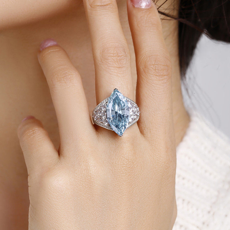 Artificial synthetic blue diamond ring 18K gold high simulation color bracelet pendant ear to draw hand jewelry customization