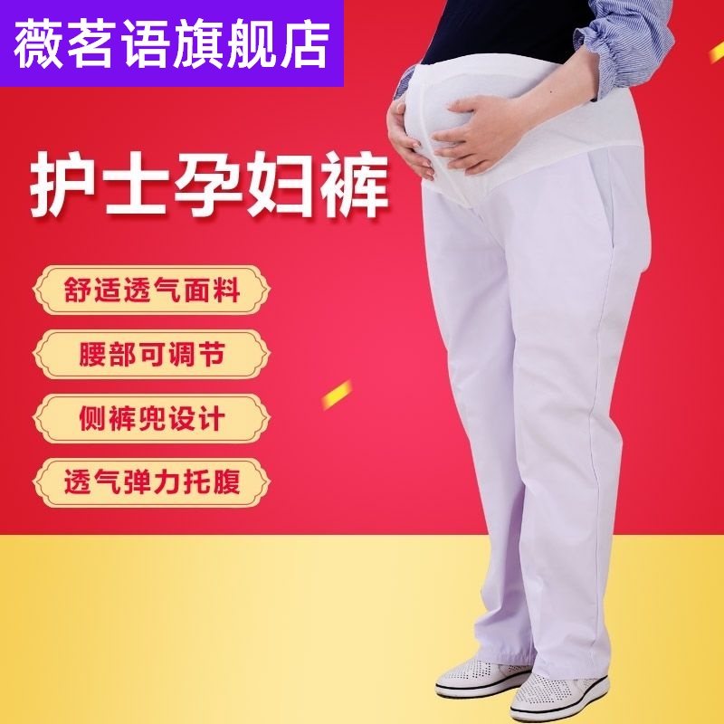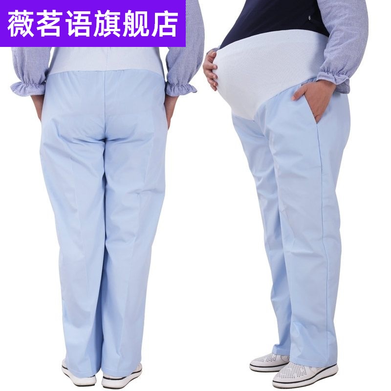 Pregnant woman nurse pants white pink blue light green adjustable aperitoneal pants set up for a larger code