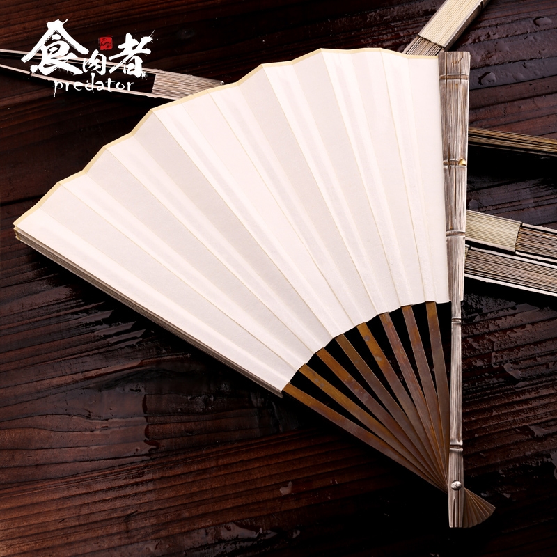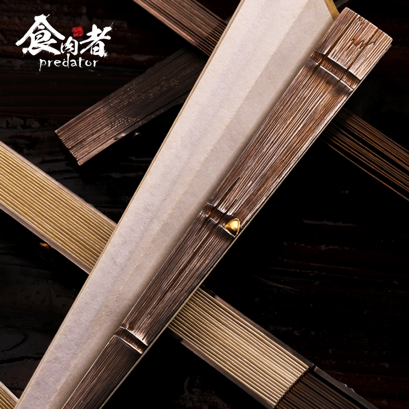 Meat eater titanium alloy Jian gold bamboo bud folding fan Tai Chi Kung Fu custom iron fan Steel bone tactical self-defense to send boyfriend gift