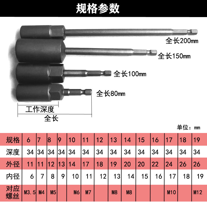 Iron Zheng Han External Hexagon Deepen Sleeve Head Lengthened Thin Wall Pneumatic Screwdriver Sleeve Electric Drill 6 Angle Nut Sleeve Wrench