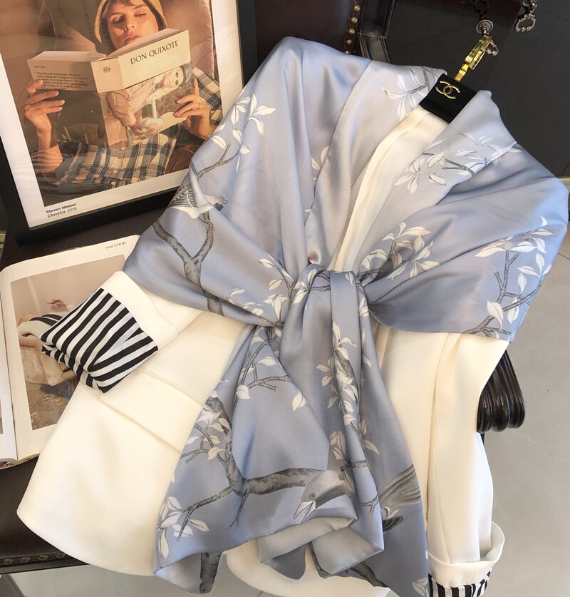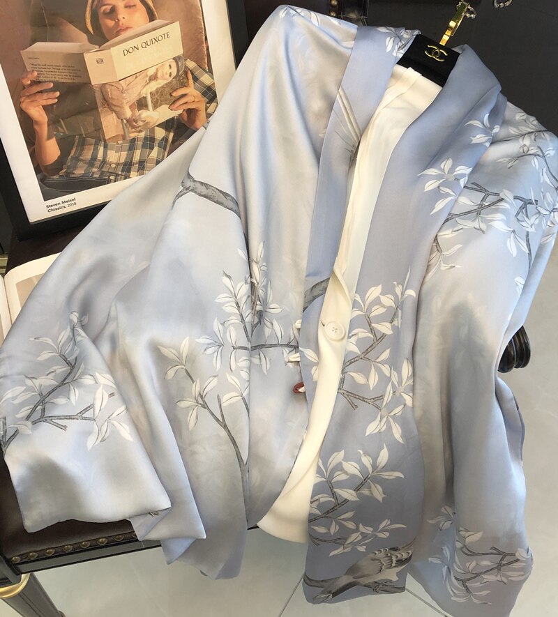 Intoxicant Pale Blue Classical Beauty Real Silk Scarlet Women Mulberry Silk Double Sided Disc Buckle Shawl Festival Gift scarves