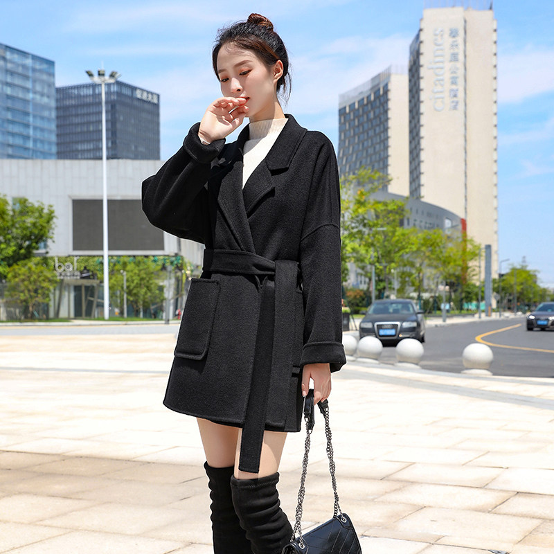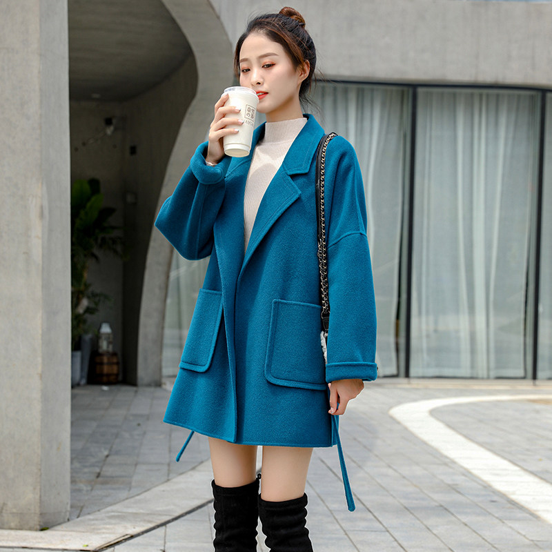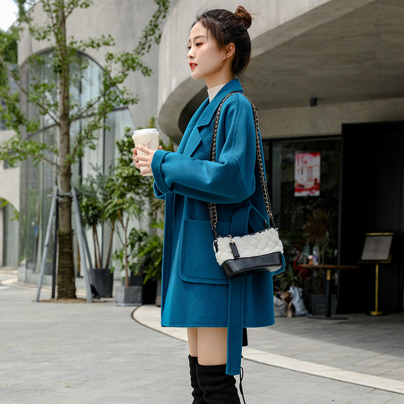 High end double face cashmere big coat woman short 2021 autumn winter new Korean version loose with gentle plush fur coat