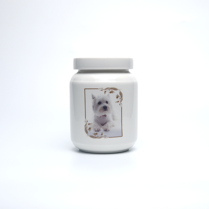 6 Middle Ceramic Catty Dog Pet Memorial Customized HD Photo Box Canned Tight Seal