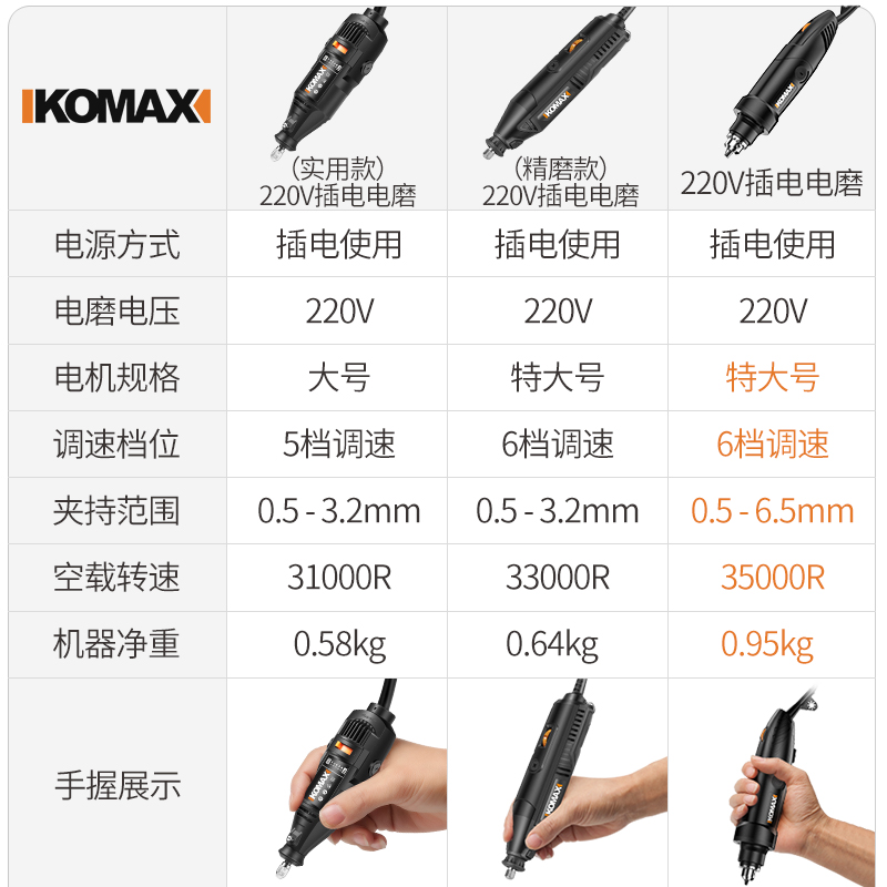 German KOMAX electric mill jade beating mill polished engraving power tool mini electric drill handheld electric grinding pen