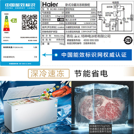 Haier Haier BC BD-518HD 518 L 718 L Commercial Large Capacity Refrigerated Horizontal Freezer