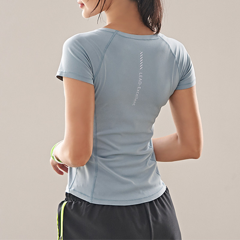 Beauty Back Short sports speed dry blouse Sweat Sweat Tight casual High waist short sleeve T-shirt Yoga Conserve gym Fitness Suit Running