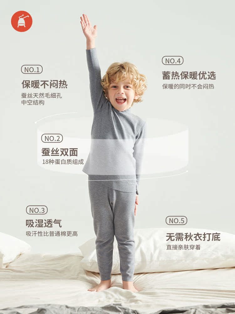 Little sweet potato children's silk space cotton boneless underwear set 2022 autumn and winter boys and girls warm autumn clothes and long johns