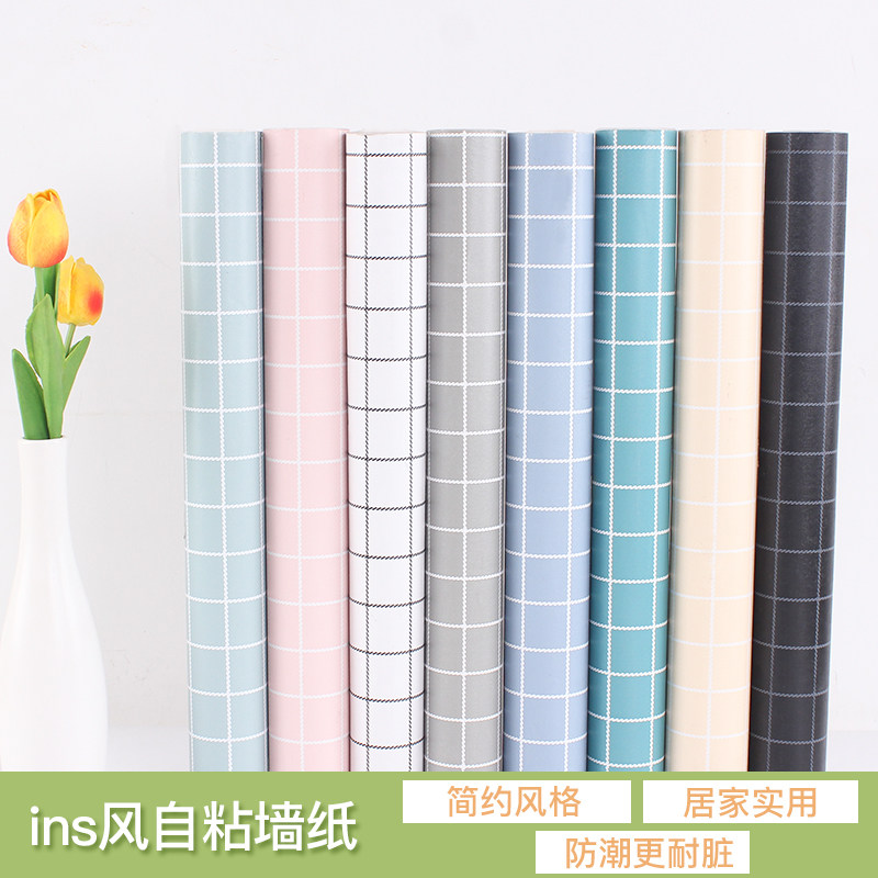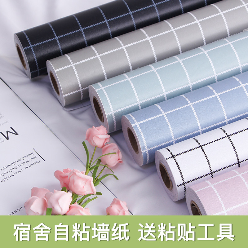 Plaid self-adhesive wallpaper waterproof and moisture-proof college student background wall bedroom cozy wallpaper cupboard Dormitory Desktop Sticker