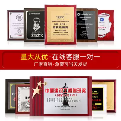 Gold Foil Medal authorization card wooden medal honor plaque custom wooden tray bronze medal customization