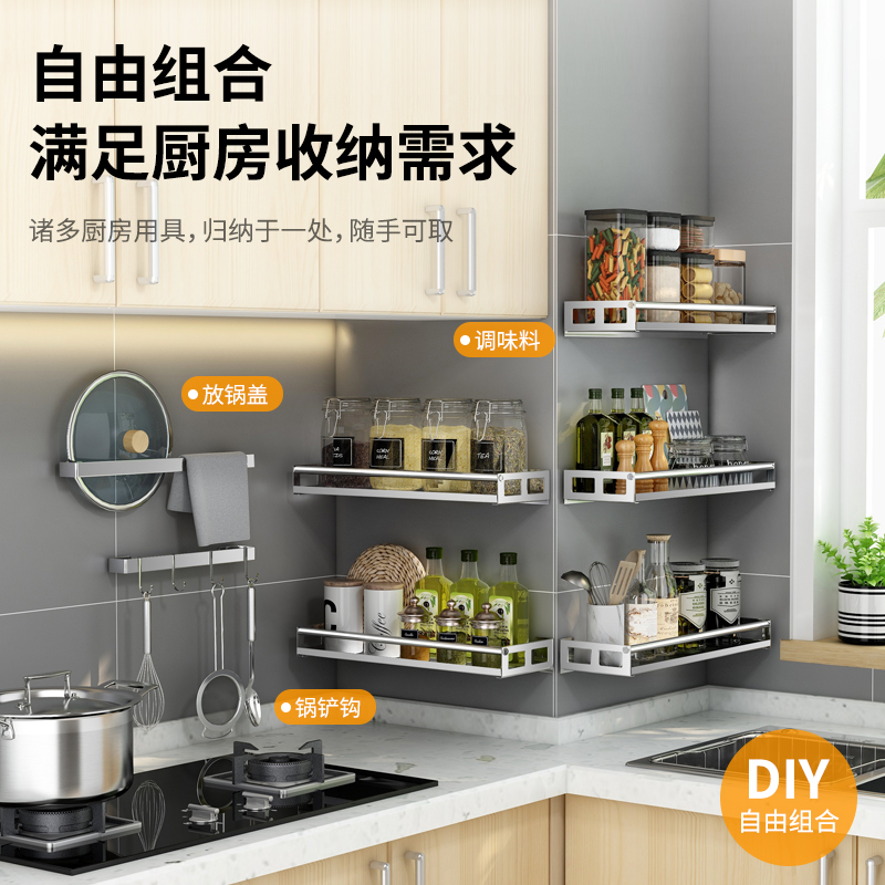 Kitchen shelf pot lid rack storage rack spice flavor rack 253545cm stainless steel punch-free wall hanging rack