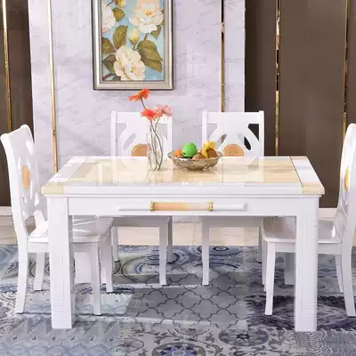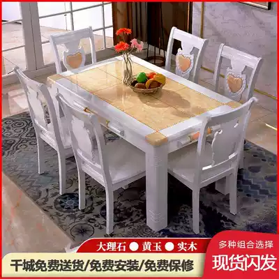 A table of 4 chairs Simple European white topaz marble dining table and chair combination rectangular solid wood dining table Household hotel chair