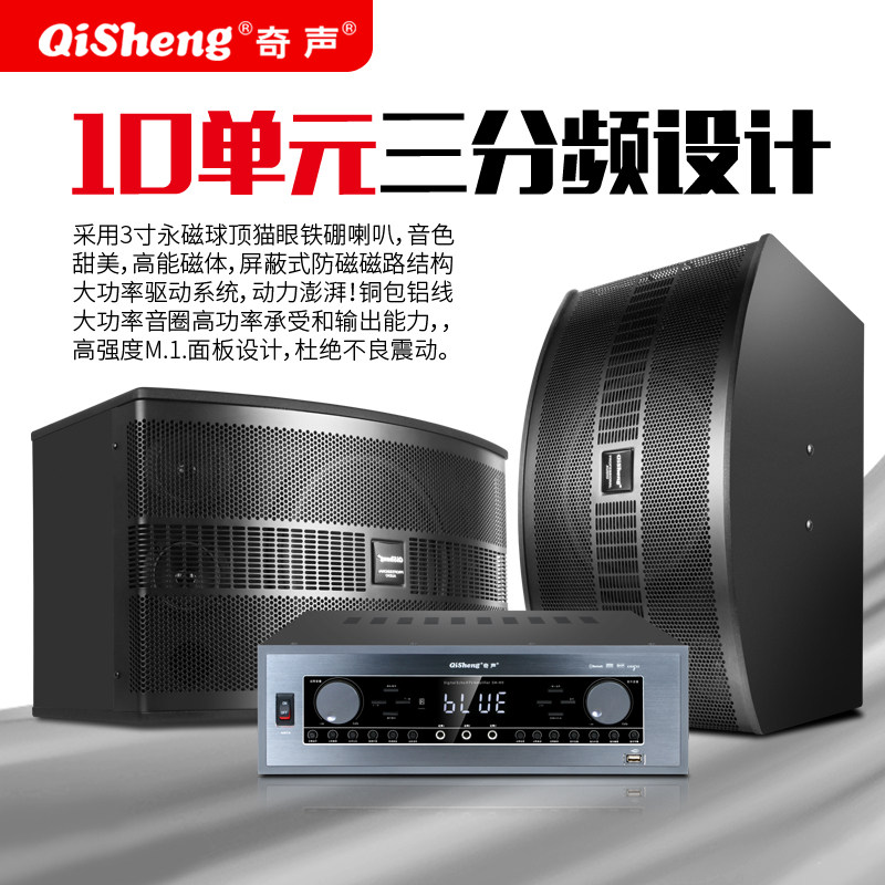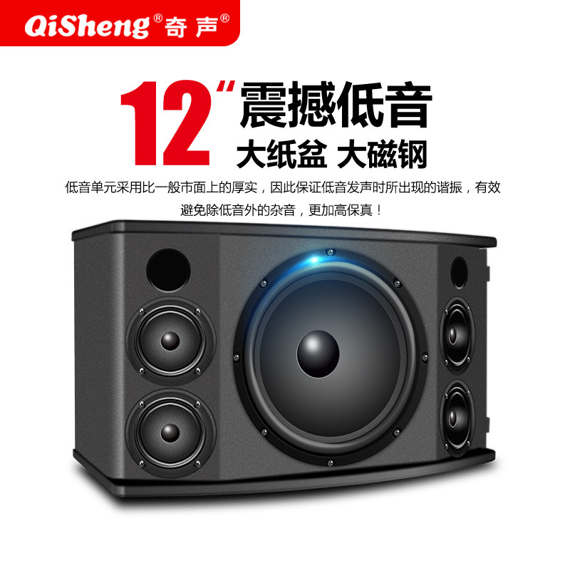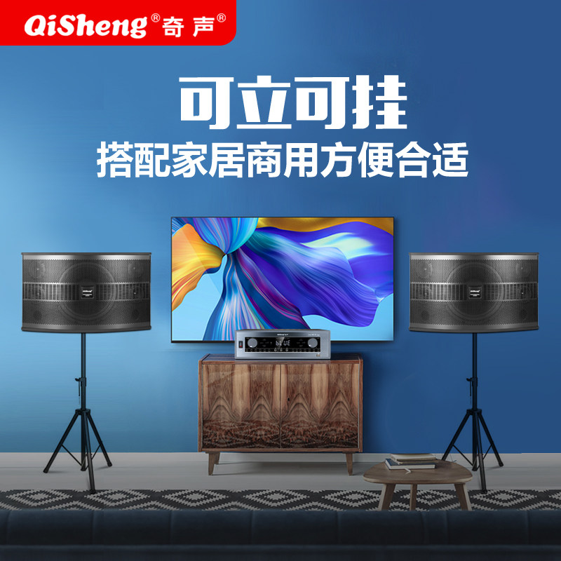 Qisheng 12-inch KTV audio set home three-way card package professional stage bar one drag four pair dance studio karaoke amplifier speaker set commercial training overweight bass
