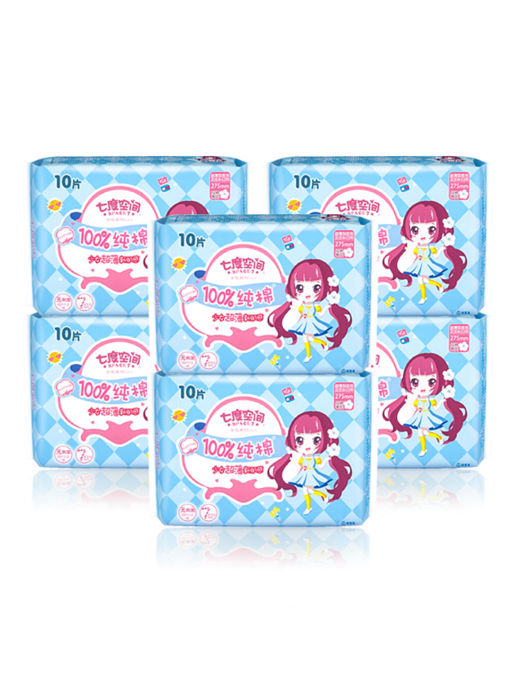 Seven Degrees Space Sanitary Cotton Women's Ultra Slim Night With 275mm Pure Cotton Aunt Towel Teenage Girl Series 120 pieces of whole box batch