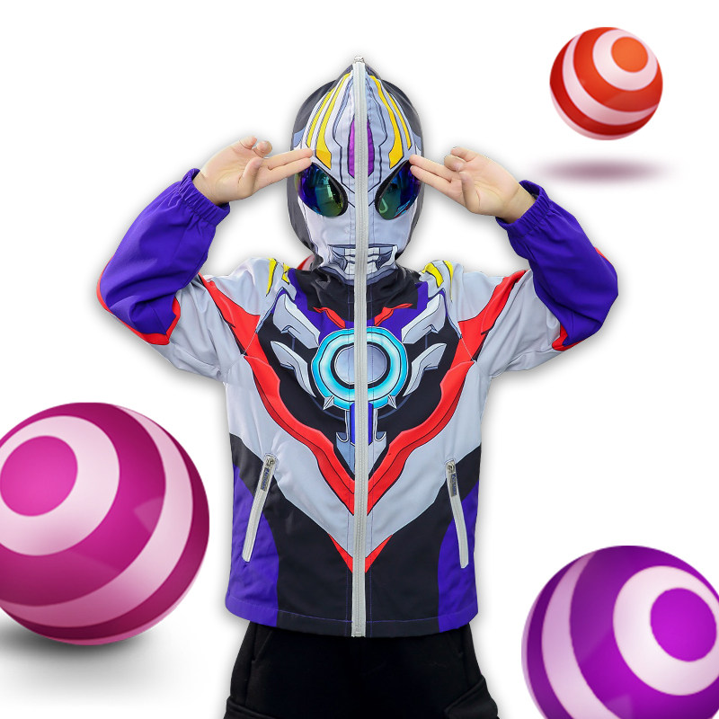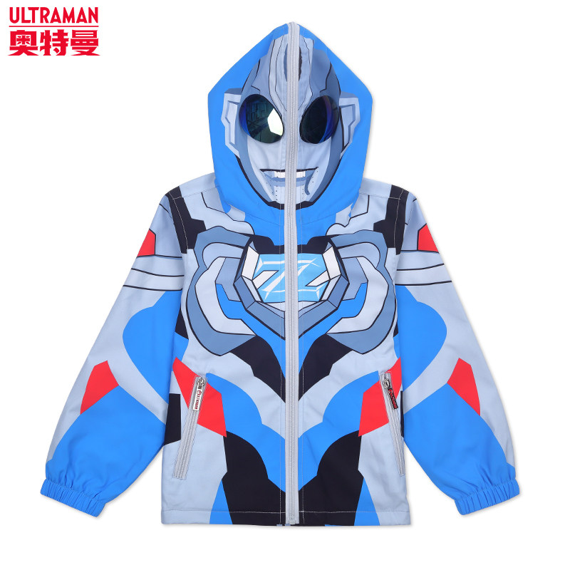 Ultraman coat children's spring and autumn tops boys autumn hooded trench coats foreign stormtrooper spider-man clothes