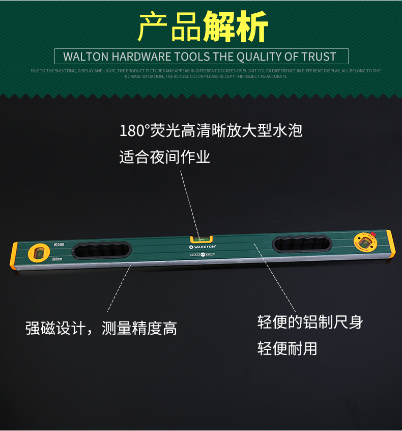 Walton level ruler high precision household level ruler with magnetic aluminum alloy by the ruler widening and thickening decoration multi-function
