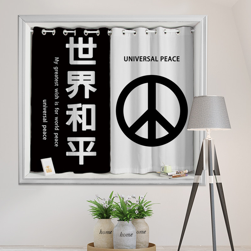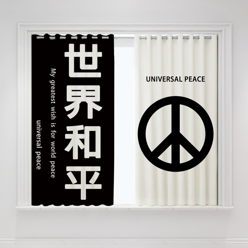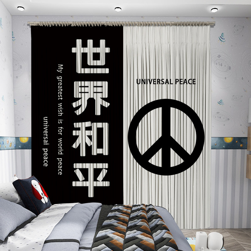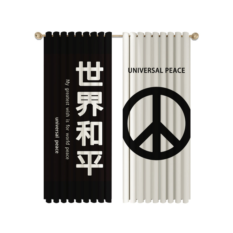 Custom long curtain coarse hemp black and white text anti-combat curtain shading partition decoration living-room bedroom floor window finished product