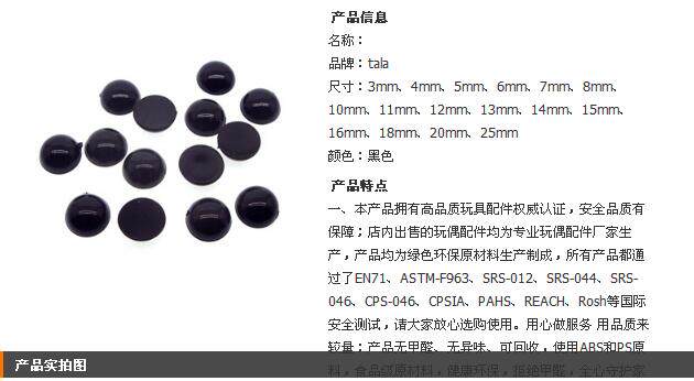 Flat-bottomed round full black bean eye fabric accessories eyeball animal doll toy plastic eye diy accessories eyeball
