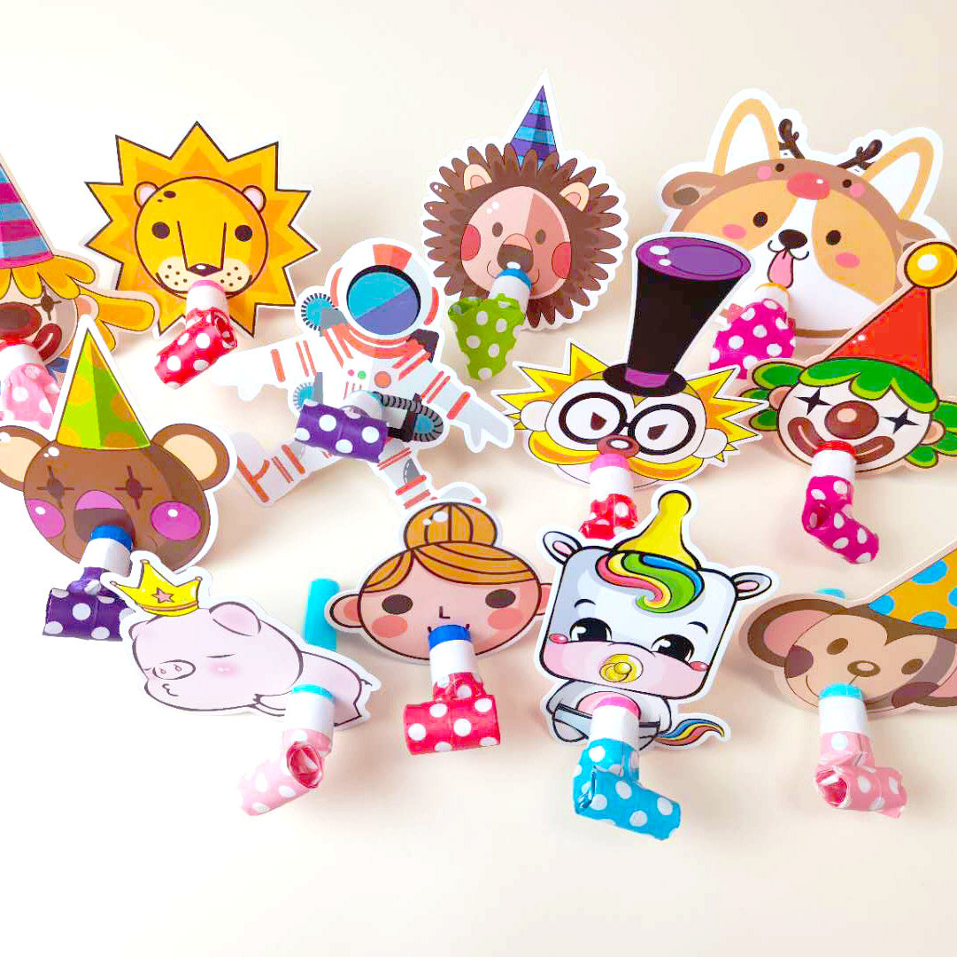 Mixed color no jam paper blowing roll 10 pcs monkey 10 pcs fox 10 pcs yellow lion 10 pcs yellow clown 10 pcs green clown 10 pcs magician 10 pcs girl