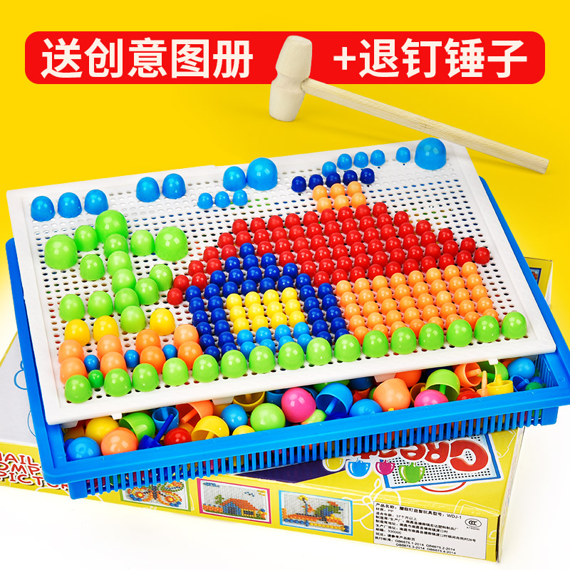 Upscale upgrades-pink 3D solid mushroom nails 588 small hammers cashier bags Puzzle Gear Mushroom Nail Building Blocks (368 granulates) Puzzle Gear Mushroom Nail Building Blocks (268 Grain Clothing